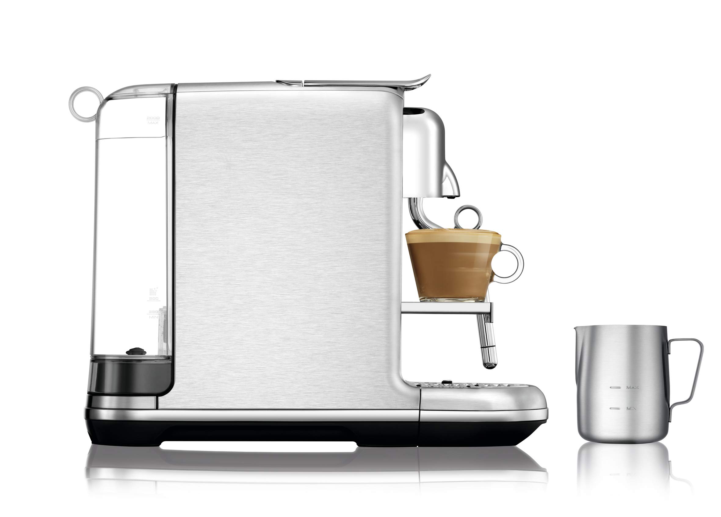 - Features & Accessories Include: Stainless steel milk jug, pop out cup support, removable drip grid and tray, Tasting Box of Nespresso Capsules